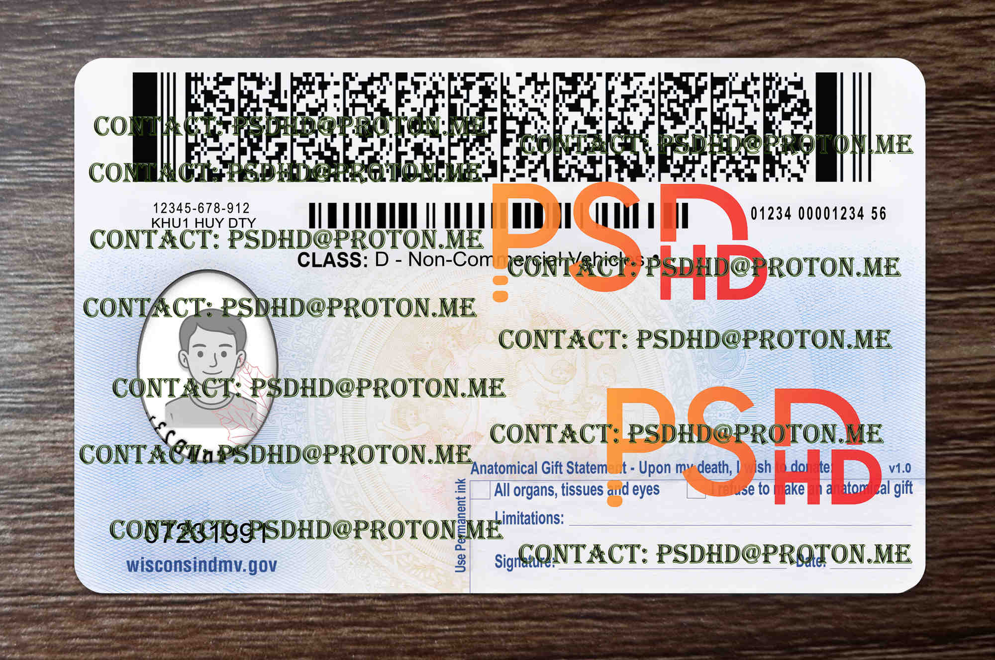 Fake Wisconsin Drivers License New V2 1200 DPI – High Quality Editable PSD